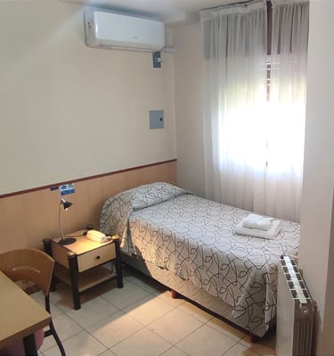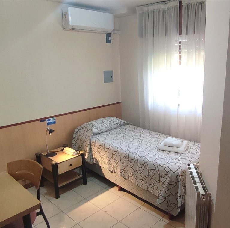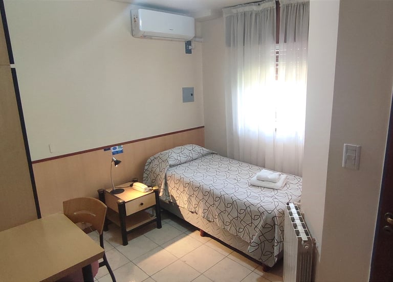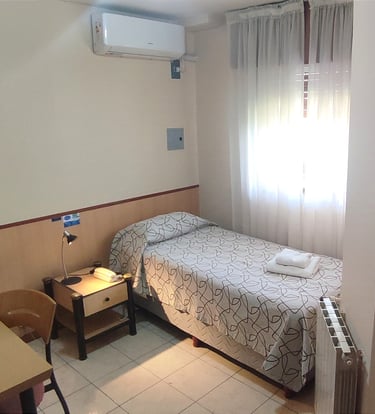 Nuestra habitación single ha sido diseñada pensando en tu comodidad y privacidad. Un espacio acogedor y funcional donde podrás descansar y recargar energías después de un día explorando la ciudad.